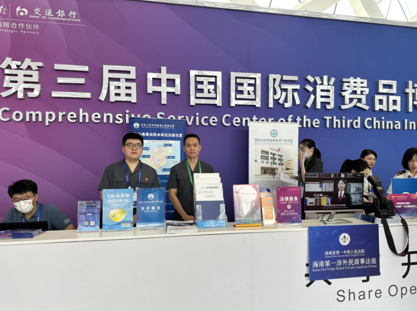 4月10日,第三屆國(guó)際消費(fèi)品博覽會(huì)(以下簡(jiǎn)稱消博會(huì))在??诶_(kāi)序幕。4月11日上午8時(shí),??诤J路ㄔ焊删谥鲿?huì)館服務(wù)臺(tái)準(zhǔn)備就緒,以飽滿的工作熱情投入到消博會(huì)的司法服務(wù)保障工作中。