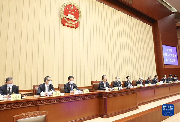 4月26日上午,十四屆全國人大常委會第二次會議在北京人民大會堂閉幕。趙樂際委員長主持閉幕會。 新華社記者 龐興雷 攝