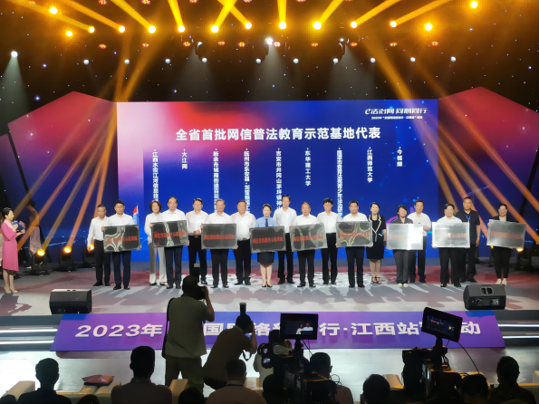 啟動儀式上,向9家江西省首批網(wǎng)信普法教育示范基地進行了授牌,并為全省首批網(wǎng)絡(luò)普法講師團代表頒發(fā)聘書。同時,連線江西部分設(shè)區(qū)市在線下開展獨具特色、形式創(chuàng)新的網(wǎng)絡(luò)普法活動現(xiàn)場。網(wǎng)絡(luò)法治宣傳展覽、網(wǎng)絡(luò)法治論壇、實地調(diào)研等網(wǎng)絡(luò)普法宣傳系列活動的同步開展,突出展現(xiàn)了江西接地氣聚人氣揚正氣的網(wǎng)絡(luò)普法工作成效。