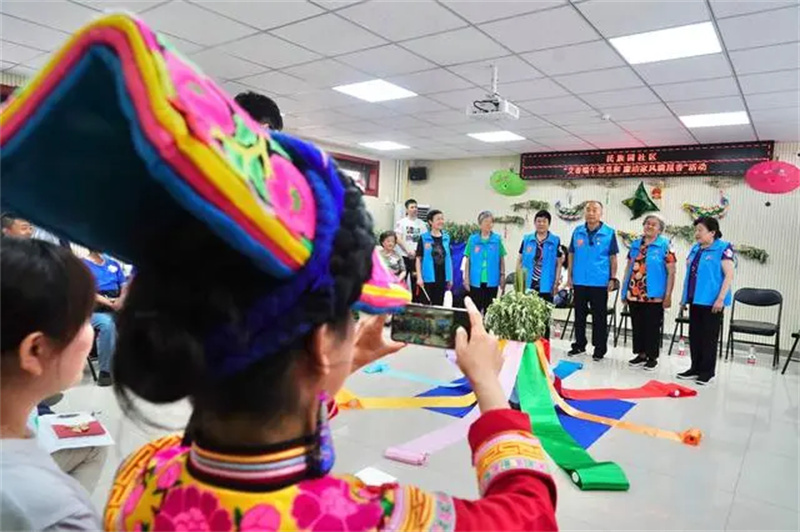 社區(qū)通過傳統(tǒng)端午祈福儀式、樓門掛艾草、制作端午避瘟藥包等形式,讓居民進(jìn)一步了解和感受中華傳統(tǒng)節(jié)日文化。