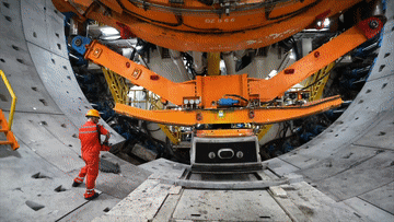 11日,在北京東六環(huán)改造工程施工現(xiàn)場(chǎng),國(guó)產(chǎn)最大直徑盾構(gòu)機(jī)“運(yùn)河號(hào)”刀盤(pán)完成最后1mm的推進(jìn),盾構(gòu)機(jī)順利到達(dá)接收井。這標(biāo)志著由首發(fā)集團(tuán)組織實(shí)施、中交隧道工程局承建的東六環(huán)改造工程?hào)|線盾構(gòu)機(jī)即將接收,這項(xiàng)國(guó)家級(jí)創(chuàng)新工程取得突破性進(jìn)展。