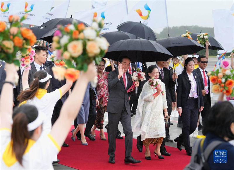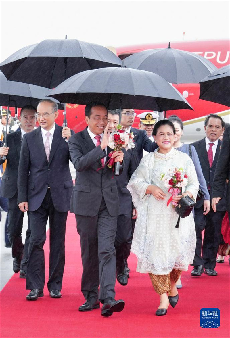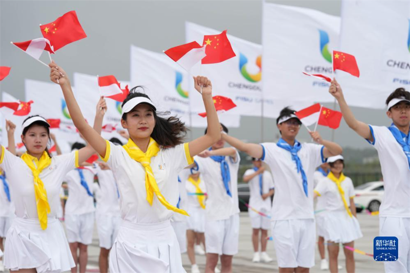 7月27日下午,來(lái)華出席成都大運(yùn)會(huì)開(kāi)幕式并訪(fǎng)問(wèn)的印度尼西亞總統(tǒng)佐科抵達(dá)四川省成都市。這是歡迎儀式現(xiàn)場(chǎng)。