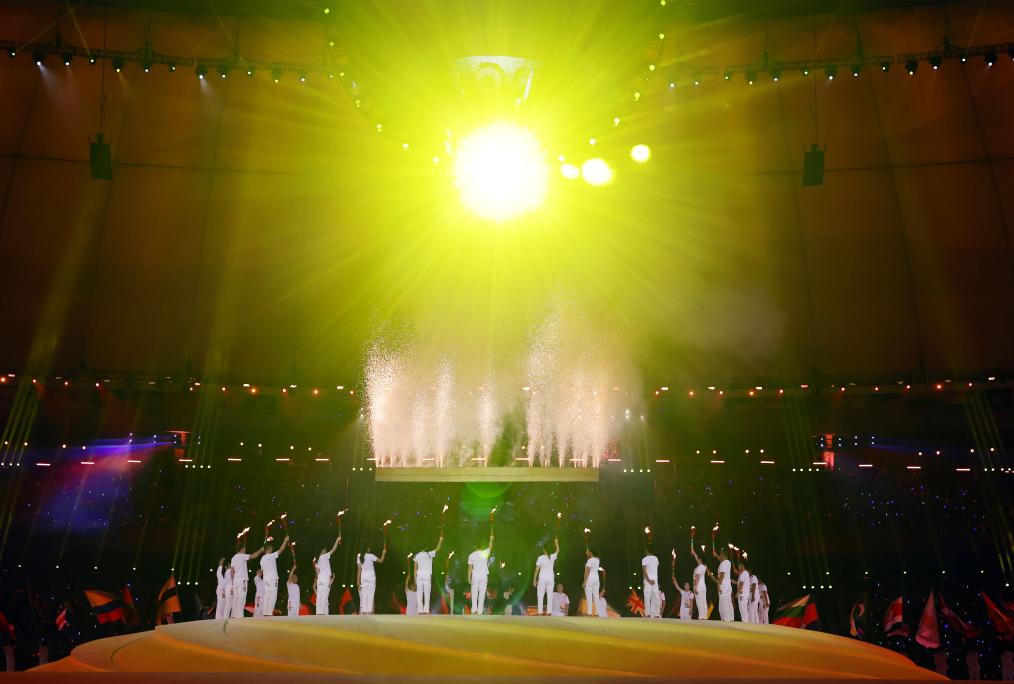 國際綜合性體育賽事開幕式的最大懸念往往就是主火炬的點(diǎn)燃方式。當(dāng)晚,在萬眾期待中,成都大運(yùn)會開幕式的點(diǎn)火儀式開始了。