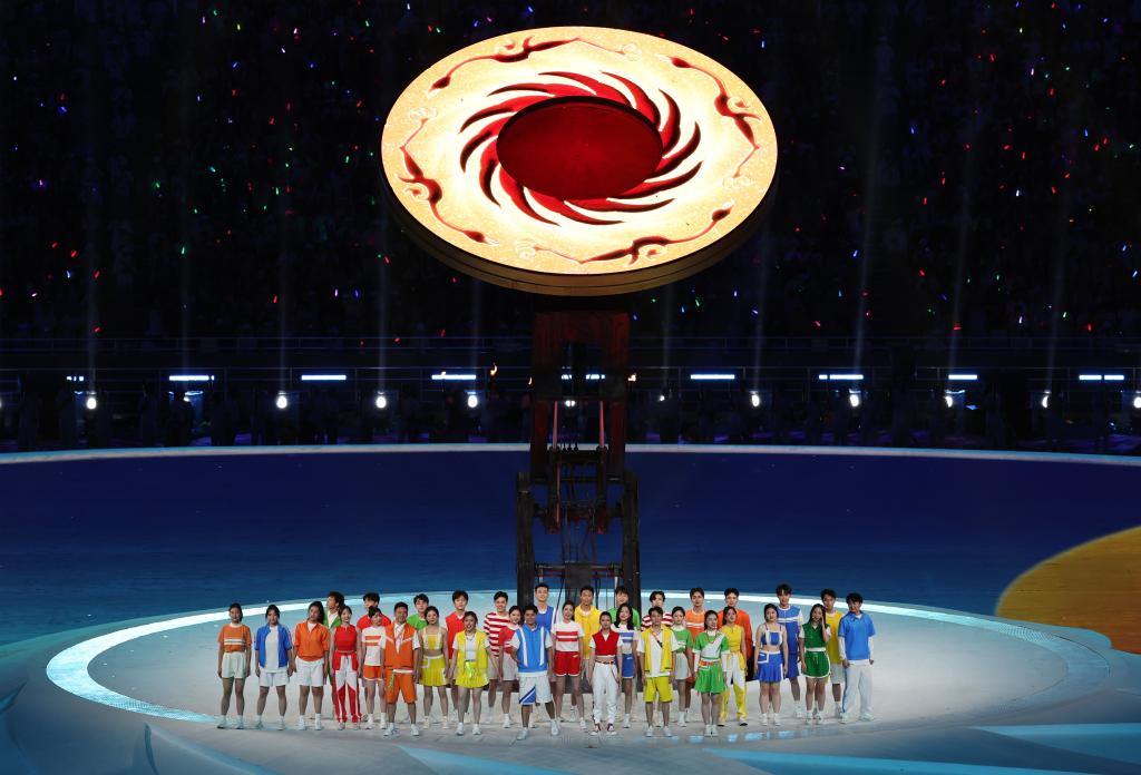 隨著大運(yùn)會(huì)主火炬塔被點(diǎn)燃,整個(gè)開幕式被推向高潮。