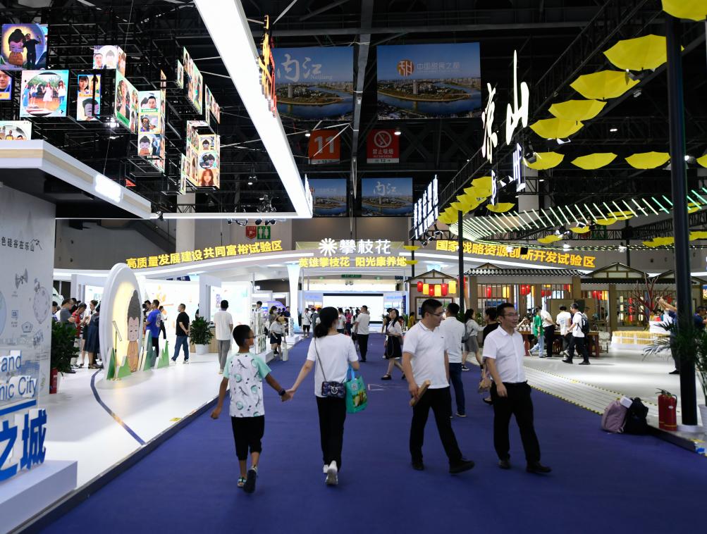 這是6月29日拍攝的第十九屆中國西部國際博覽會(huì)四川“五區(qū)共興”館。新華社記者 胥冰潔 攝