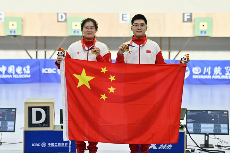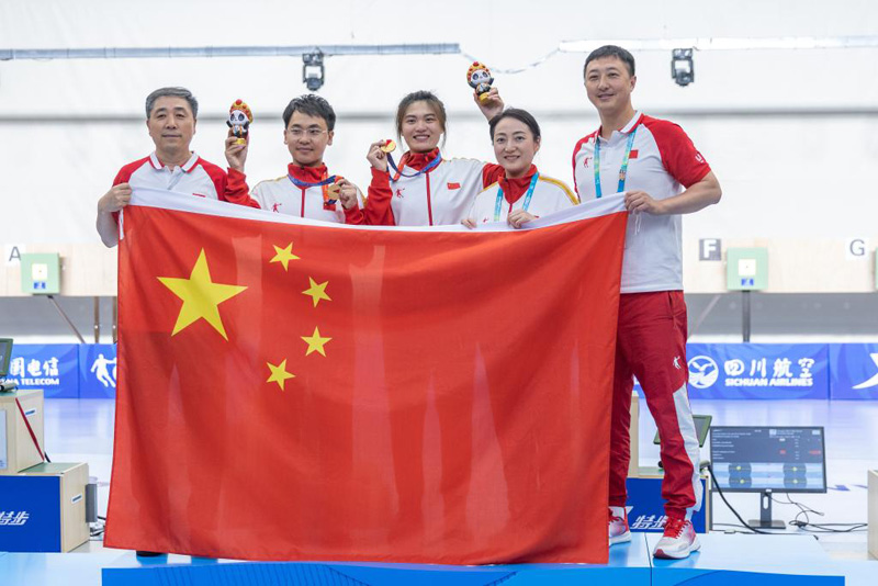 新華社成都8月2日電(記者黃耀漫、王春燕、田光雨)成都大運(yùn)會射擊項(xiàng)目2日收官。充滿懸念的賽制、實(shí)力相當(dāng)?shù)膶﹃?、中國?duì)的機(jī)會,這些元素組合在一起,令當(dāng)天的兩場團(tuán)體決賽顯得格外刺激。最終中國隊(duì)選手頂住壓力,包攬10米氣步槍和10米氣手槍混合團(tuán)體兩枚金牌,為他們的成都大運(yùn)會之旅畫上圓滿的句號。