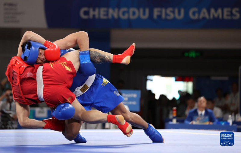 當(dāng)日,在成都第31屆世界大學(xué)生夏季運(yùn)動會武術(shù)散打男子80公斤級決賽中,中國選手柳文龍以2比0戰(zhàn)勝伊朗選手阿里,獲得冠軍。