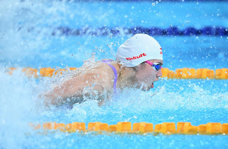 8月2日,張雨霏在決賽中。當(dāng)日,在成都舉行的第31屆世界大學(xué)生夏季運動會女子50米蝶泳決賽中,中國選手張雨霏以25秒20的成績獲得冠軍。新華社記者 陳澤國 攝