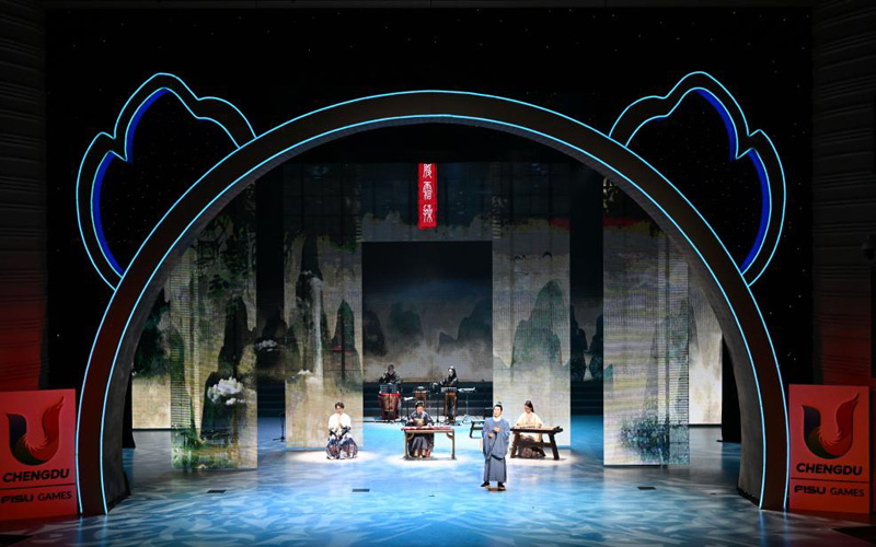 8月1日,“大音希聲”古琴音樂晚會在成都大運村藝術(shù)中心大劇場舉行,來自成都古琴文化學(xué)會和梓又雅樂團的演奏者為觀眾帶來精彩表演。本場活動是在大運村舉辦的“Be Together”主題系列晚會之一。新華社記者 蔡湘鑫 攝