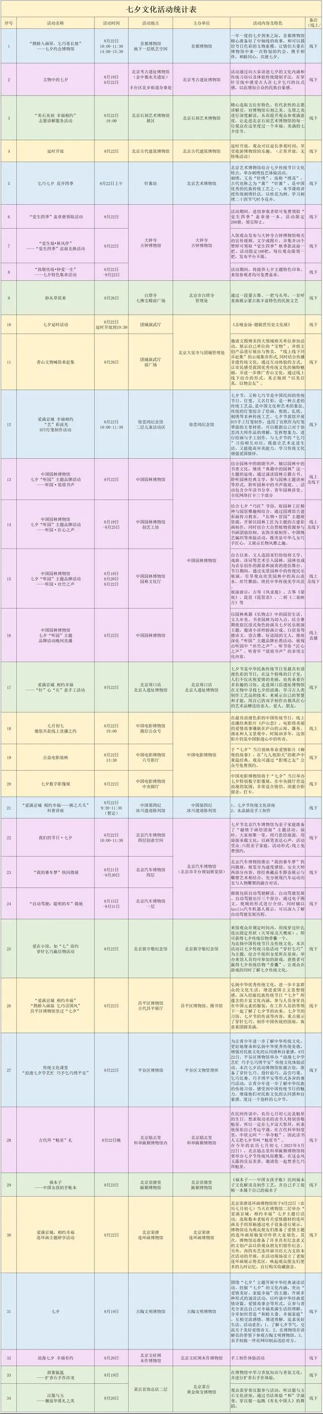 七夕節(jié)當(dāng)天,首都博物館精心準(zhǔn)備了中軸線的故事,以及可以描繪節(jié)日色彩的文物素模,邀請(qǐng)情侶、夫妻在博物館中來(lái)一次特別的約會(huì),共同品味文物故事,參與手工互動(dòng)體驗(yàn)。北京藝術(shù)博物館將舉辦“乞巧七夕 花開(kāi)四季”刺繡技藝體驗(yàn)活動(dòng),觀眾可以在萬(wàn)壽寺的古建筑中,學(xué)習(xí)刺繡二十四節(jié)氣時(shí)令花卉,感受七夕傳統(tǒng)習(xí)俗。北京周口店北京人遺址博物館將舉辦“‘針’心‘石’意手工活動(dòng)”,觀眾可以在文物中尋找七夕的浪漫,學(xué)習(xí)古人類制作工藝品的技術(shù),為親友送上一件手作藝術(shù)品。