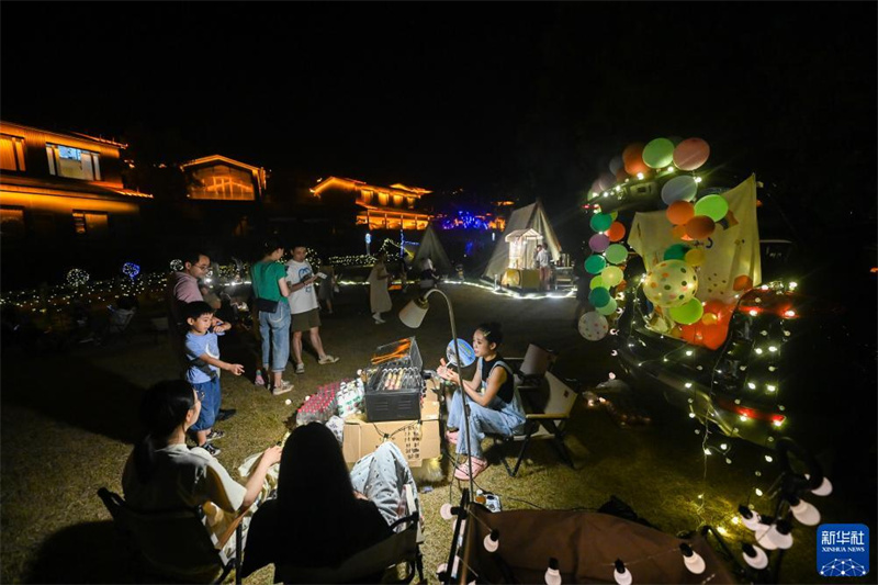 8月19日傍晚,浙江省建德市三都鎮(zhèn)三都漁村開啟了“看亞運·游建德·迎七夕”夜游系列活動,包括體驗水上婚禮、品嘗水鄉(xiāng)美食、看露天電影、游鄉(xiāng)村集市等活動,邀請游客和青年人才體驗打卡漁村夜色。