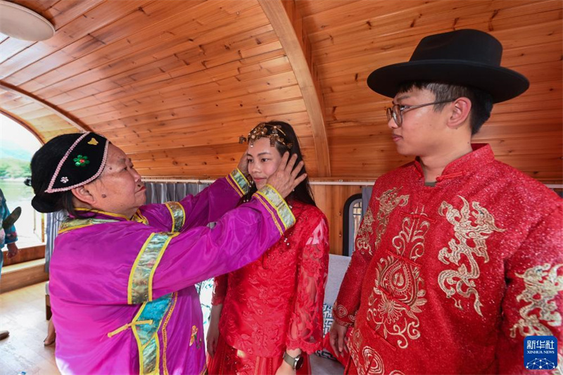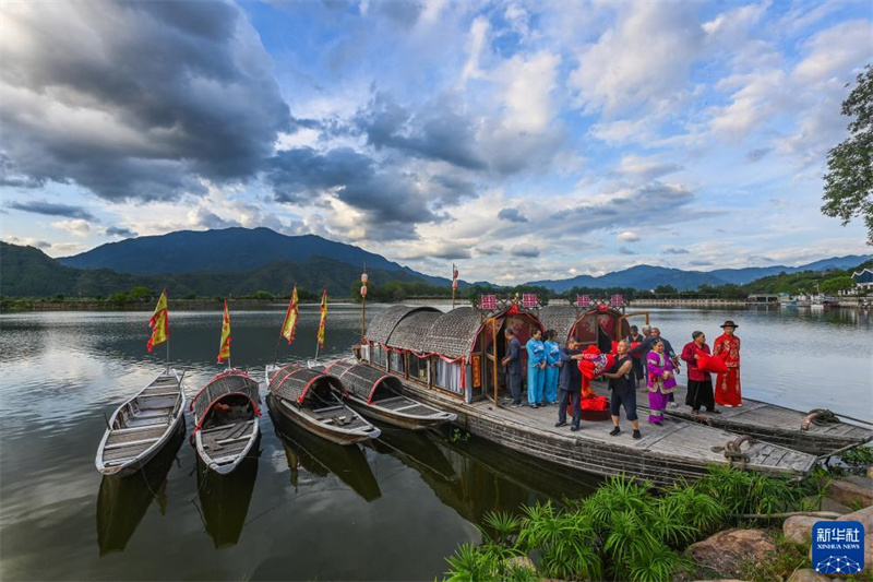 8月19日拍攝的三都鎮(zhèn)三都漁村水上婚禮傳統(tǒng)民俗表演?!?/span>