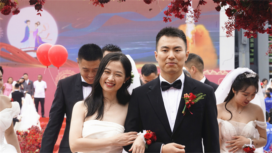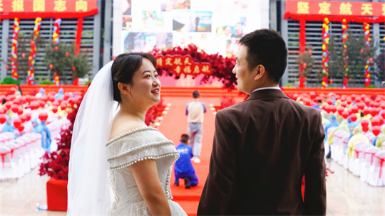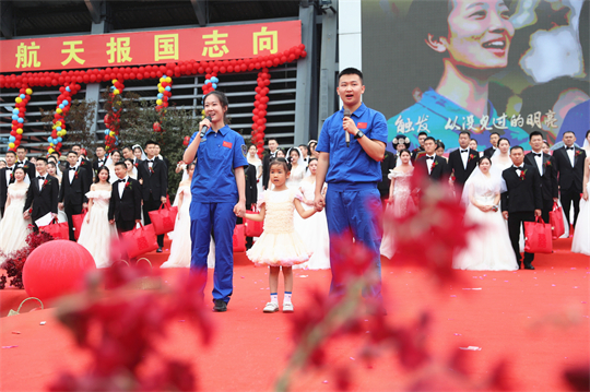 一項(xiàng)項(xiàng)儀式,將集體婚禮活動(dòng)引向高潮。此次參加集體婚禮的航天工作者大多來自一線崗位,他們常年執(zhí)行高密度航天發(fā)射任務(wù),缺少時(shí)間與愛人團(tuán)聚,有的婚期更是一再推遲。中心為一對對新人搭建起盛大的舞臺(tái),舉辦隆重的集體婚禮,讓祖國見證他們的幸福與榮光。