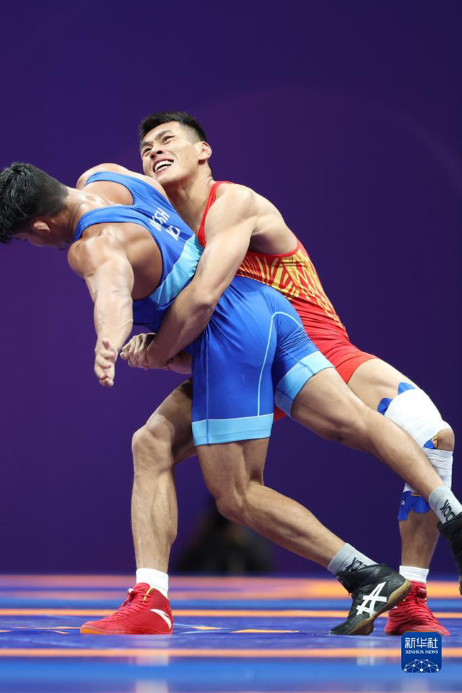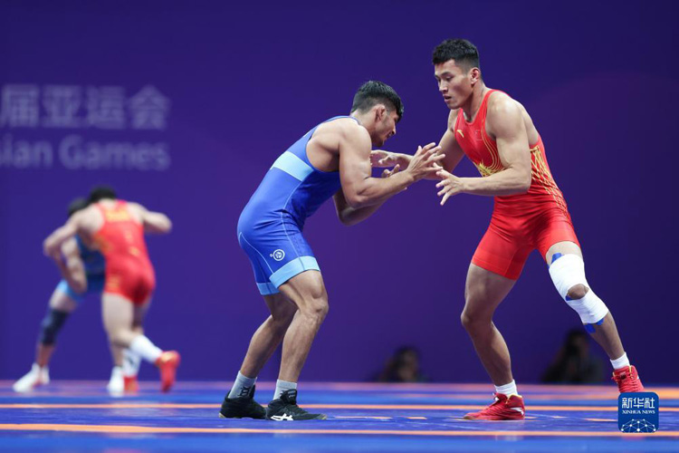 當(dāng)日,在杭州亞運會摔跤項目男子古典式77公斤級四分之一決賽中,中國選手劉瑞戰(zhàn)勝印度選手維卡斯,晉級半決賽。