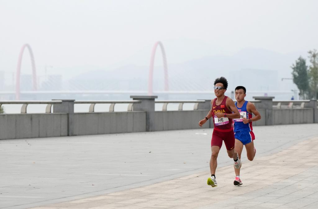 當天上午7時,男子馬拉松比賽率先鳴槍。今年創(chuàng)造了全國紀錄的何杰攜手隊友楊紹輝出戰(zhàn),被寄予厚望。比賽30公里后,何杰、楊紹輝、朝鮮選手韓日龍等7人形成第一集團。38公里后,何杰和韓日龍甩開大部隊,展開了激烈競逐。到40公里時,何杰發(fā)力,開始獨自領(lǐng)跑。最終,他以2小時13分02秒的成績奪冠,韓日龍、楊紹輝分獲亞軍和季軍。