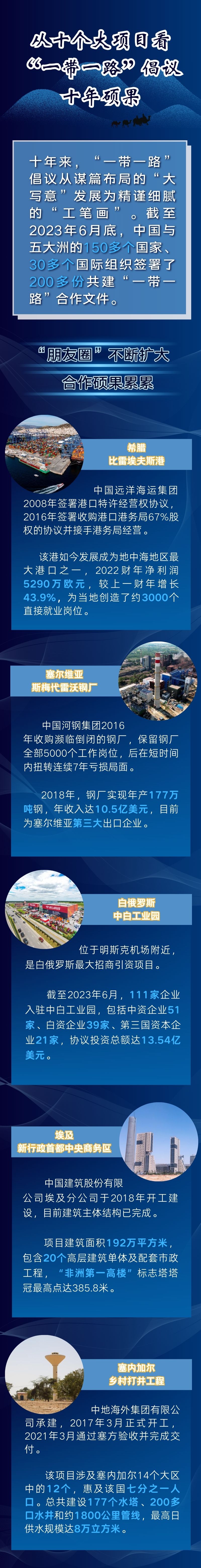 今年是中國(guó)提出共建“一帶一路”倡議十周年。十年來(lái),“一帶一路”倡議從謀篇布局的“大寫(xiě)意”發(fā)展為精謹(jǐn)細(xì)膩的“工筆畫(huà)”。截至2023年6月底,中國(guó)與五大洲的150多個(gè)國(guó)家、30多個(gè)國(guó)際組織簽署了200多份共建“一帶一路”合作文件,“朋友圈”不斷擴(kuò)大,合作碩果累累。