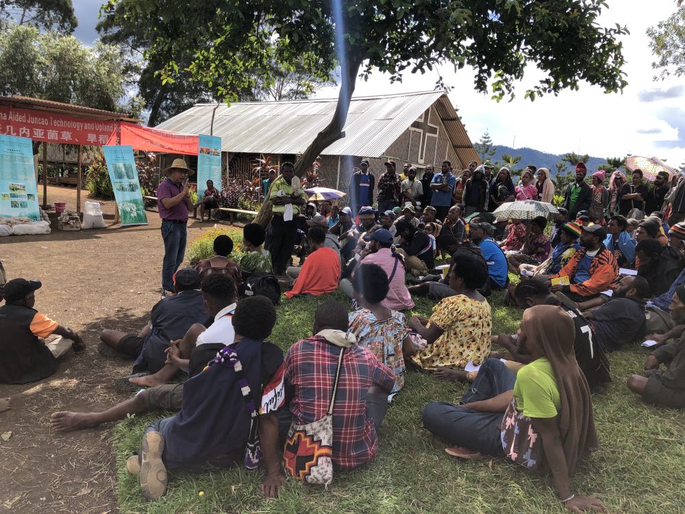 中國專家在巴布亞新幾內(nèi)亞東高地省中國援助巴新菌草和旱稻技術(shù)項目第9期培訓(xùn)班上授課(2020年12月15日攝)。新華社發(fā)