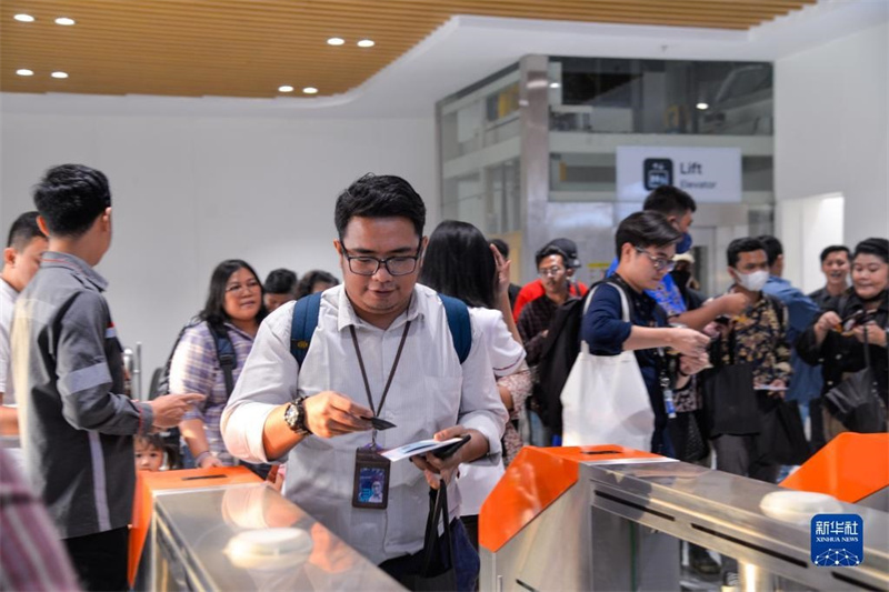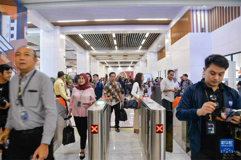 10月17日,在印度尼西亞萬隆德卡魯爾站,乘客刷票出站。新華社記者 徐欽 攝
