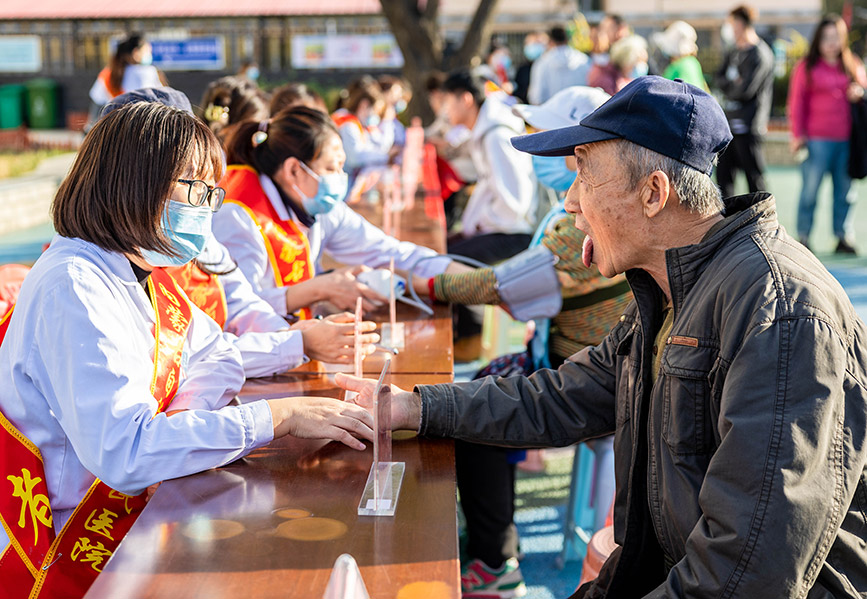 10月18日,呼和浩特市玉泉區(qū)長和廊街道 “健康速遞 情暖重陽”主題活動在菩提塔東社區(qū)舉行?;顒蝇F(xiàn)場,來自內(nèi)蒙古自治區(qū)人民醫(yī)院第三黨總支的醫(yī)療專家為社區(qū)老人進(jìn)行了健康義診和慢性病防治知識講座?!奥?lián)動藥房”的志愿者還為社區(qū)獨居、空巢老人上門贈送“長者藥箱”,以實際行動弘揚尊老敬老傳統(tǒng)美德。(丁根厚)