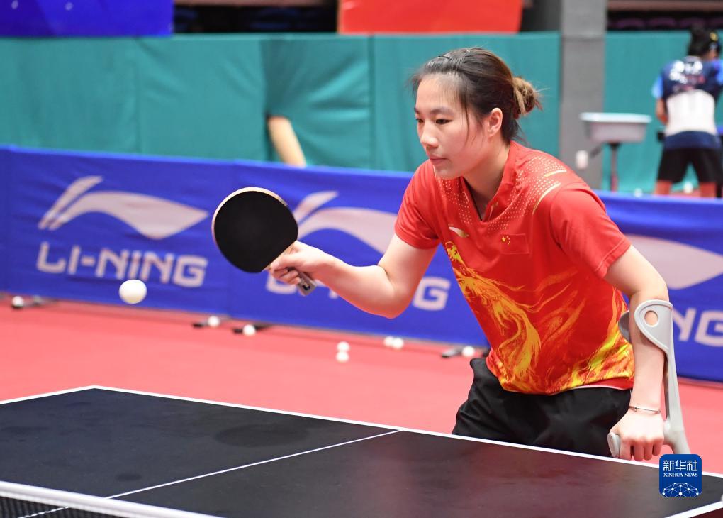 9月12日,中國(guó)殘疾人乒乓球隊(duì)運(yùn)動(dòng)員黃文娟在訓(xùn)練中。新華社記者 朱旭東 攝