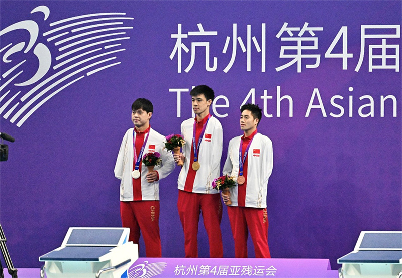 10月23日,杭州第4屆亞殘運會開幕后的首個比賽日,杭州本土選手徐海蛟在男子400米自由泳—S8決賽和男子200米個人混合泳—SM8決賽項目中,勇奪兩枚金牌。