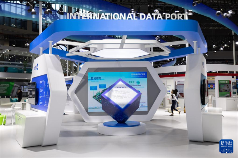 這是11月2日在技術(shù)裝備展區(qū)臨港展示區(qū)拍攝的國際數(shù)據(jù)經(jīng)濟(jì)產(chǎn)業(yè)園展臺。