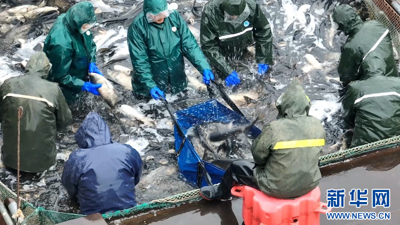 距離新春佳節(jié)還有20多天,在湖北省老河口市排子河水庫,有機養(yǎng)殖的淡水魚成為年貨市場的俏銷貨,養(yǎng)殖戶和水產(chǎn)批發(fā)商忙著起魚、過秤、裝車,發(fā)往全國各地。(李聞 付冰潔)