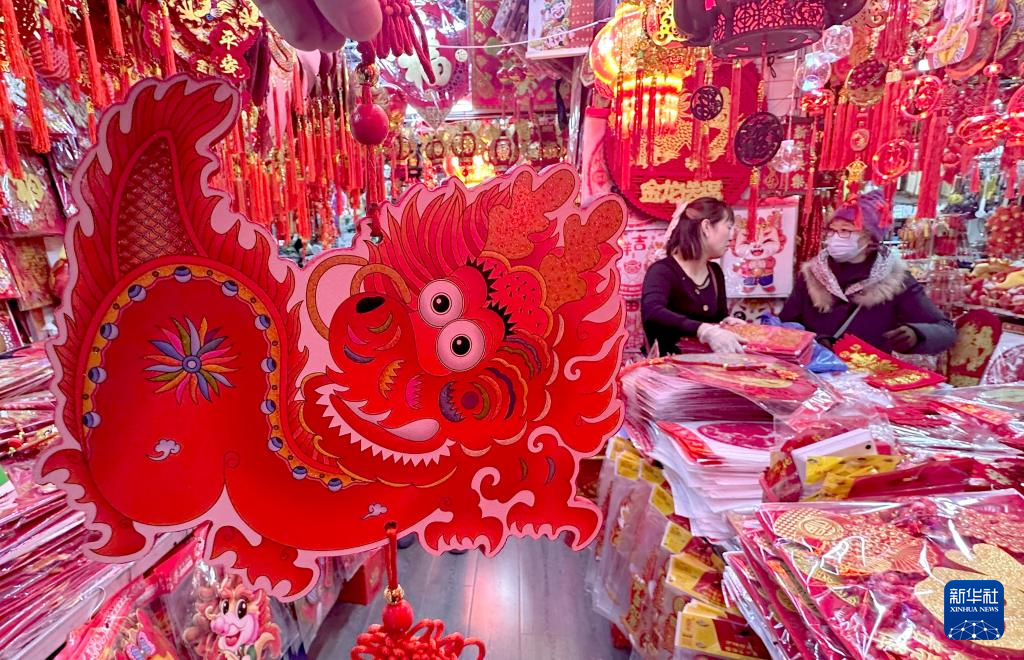 1月20日,人們?cè)诤颖笔∈仪f市南三條年貨批發(fā)市場(chǎng)選購(gòu)春節(jié)飾品。新華社發(fā)(梁子棟攝)