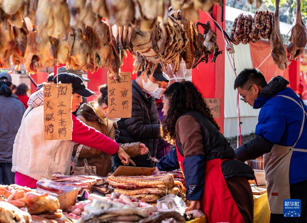 1月17日,市民在昆明翠湖年貨街上選購年貨。