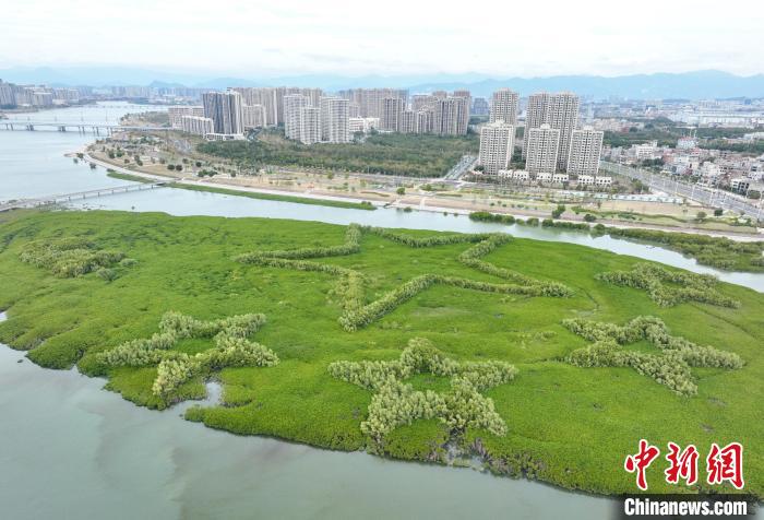 中新網(wǎng)廈門1月25日電(彭莉芳)退潮時分,在廈門市翔安區(qū)下潭尾紅樹林公園的灘涂上,一組由紅樹林勾勒的地標(biāo)景觀露出海面,郁郁蔥蔥,頗為壯觀。地標(biāo)景觀寓意“我愛中國”,紛至沓來的游客,在暮色中拍照“打卡”,偶爾驚起白鷺一片。