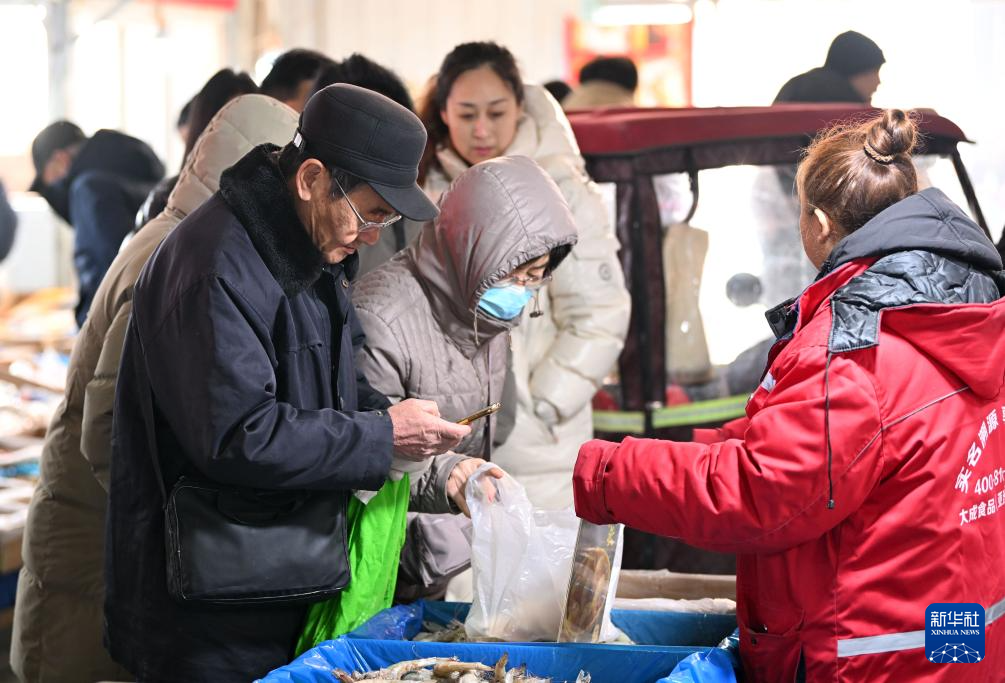 新春佳節(jié)臨近,在天津韓家墅海吉星農(nóng)產(chǎn)品批發(fā)市場舉辦的2024年天津市北辰區(qū)新春年貨節(jié)上,消費(fèi)者來來往往,熱鬧非凡。