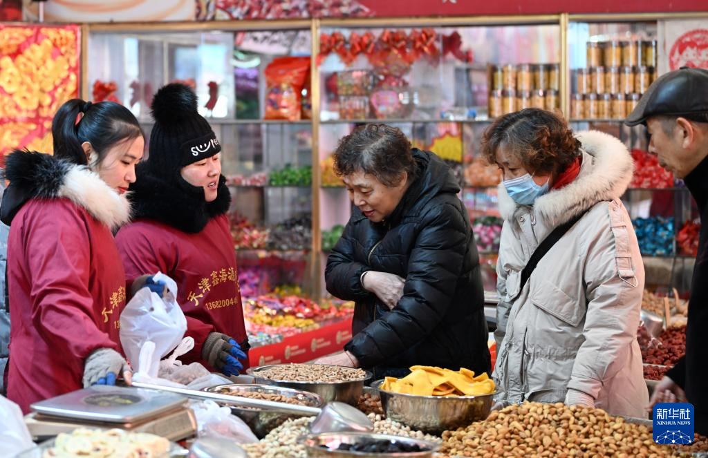新春佳節(jié)臨近,在天津韓家墅海吉星農產品批發(fā)市場舉辦的2024年天津市北辰區(qū)新春年貨節(jié)上,消費者來來往往,熱鬧非凡。