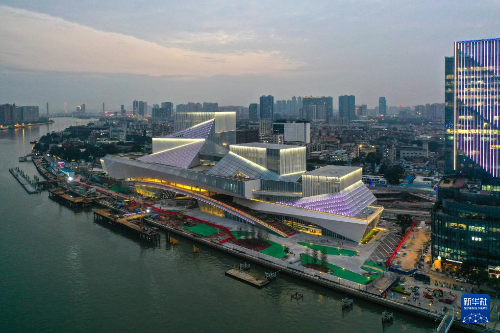 由中建三局承建的白鵝潭大灣區(qū)藝術(shù)中心進(jìn)行亮燈測(cè)試(1月31日攝,無(wú)人機(jī)照片)。白鵝潭大灣區(qū)藝術(shù)中心位于廣州珠江白鵝潭,該項(xiàng)目集廣東美術(shù)館、廣東非物質(zhì)文化遺產(chǎn)展示中心、廣東文學(xué)館“三館合一”,目前已進(jìn)入室內(nèi)裝修工程收尾階段。