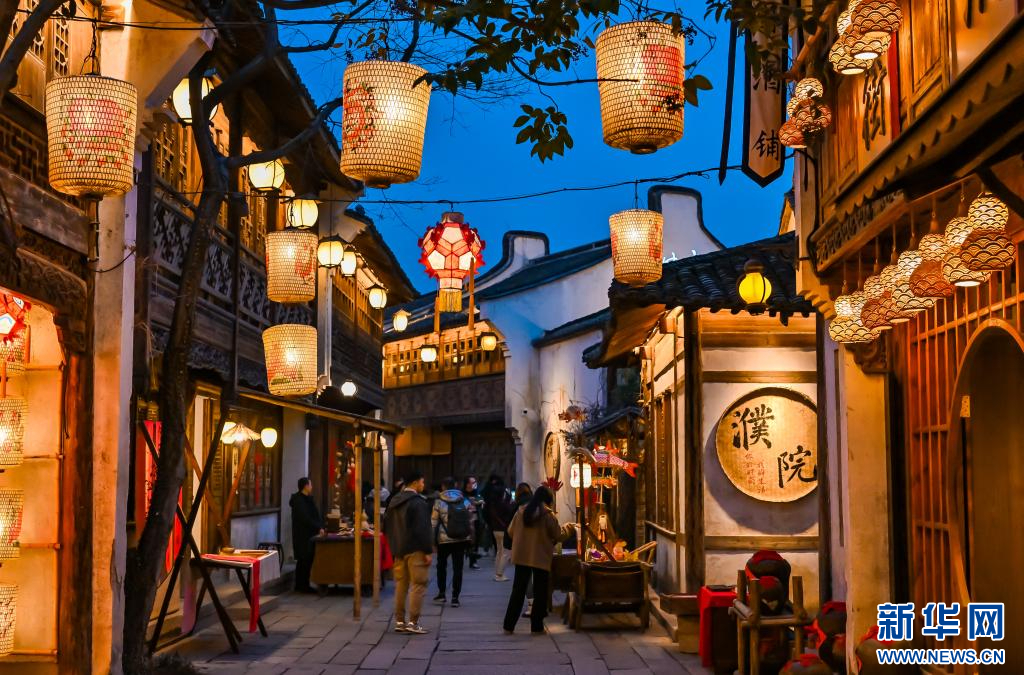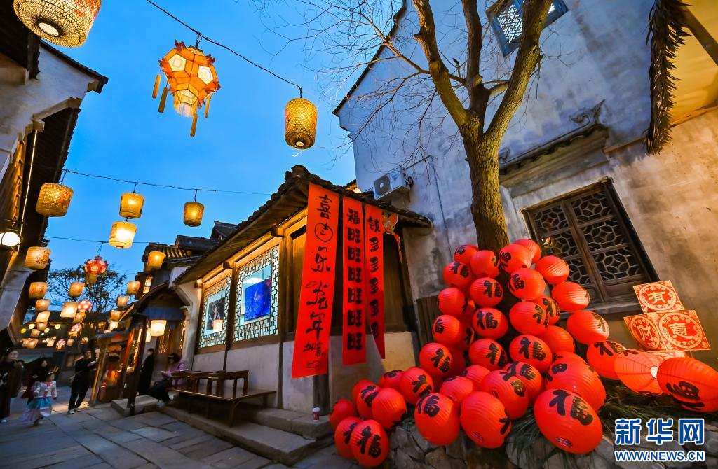 濮院寺灣街呈現(xiàn)出濃濃的新年氛圍。新華網(wǎng)發(fā) 濮院時(shí)尚古鎮(zhèn)供圖