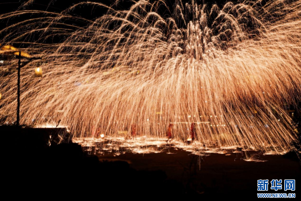 水上打鐵花表演。新華網(wǎng)發(fā) 濮院時(shí)尚古鎮(zhèn)供圖