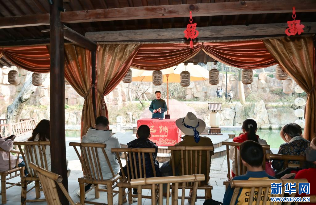 濮院瓦舍說(shuō)書(shū)——桐鄉(xiāng)三跳。新華網(wǎng)發(fā) 濮院時(shí)尚古鎮(zhèn)供圖