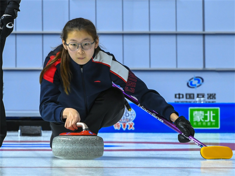 四川隊隊員在比賽中擲壺。