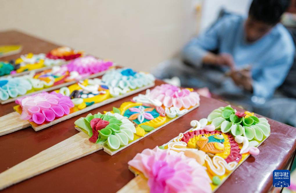在拉薩八廓商城,制作完成的酥油花被放進(jìn)盒中存放(2月7日攝)。