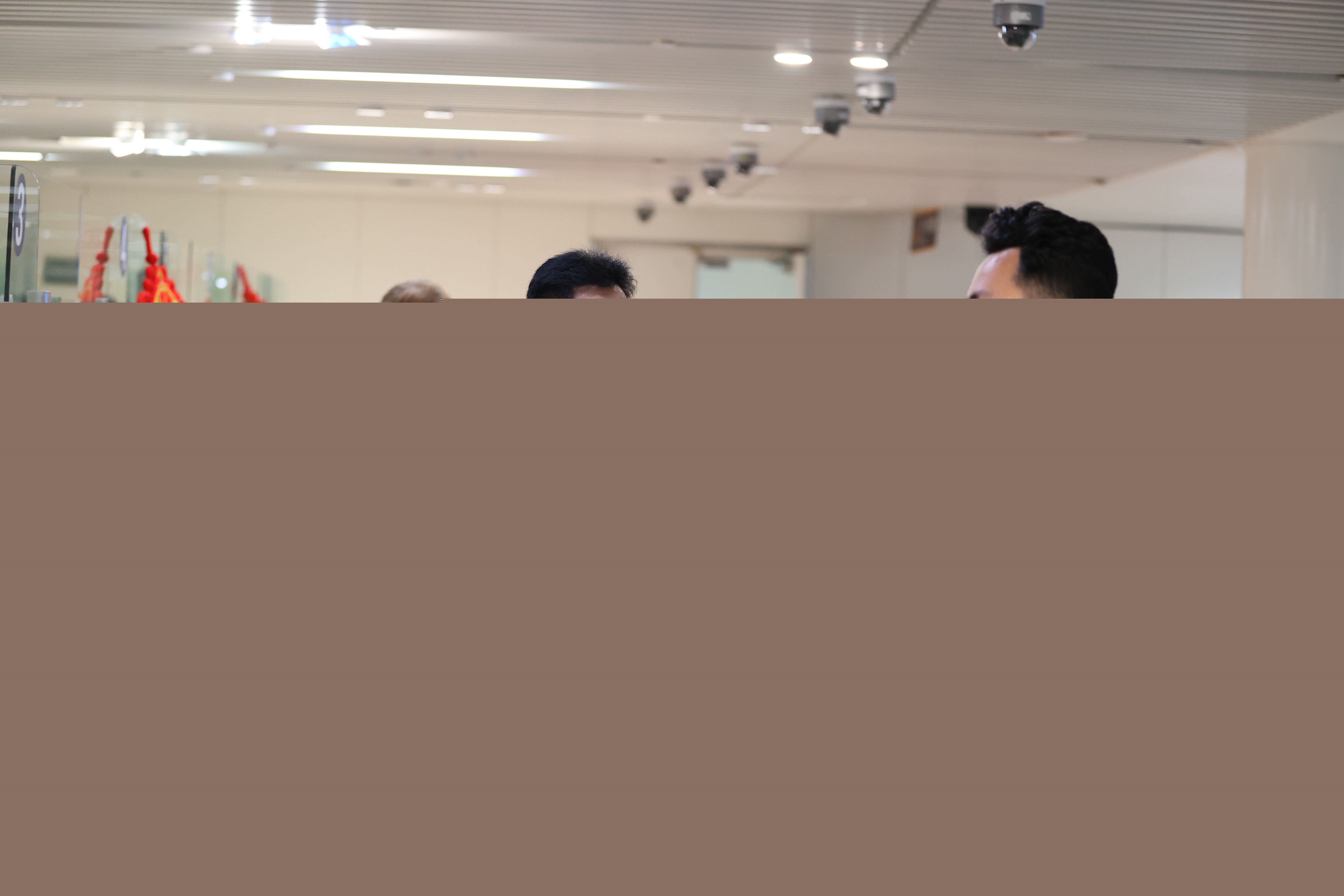 “新加坡航班艙門打開,現(xiàn)在開始下客?!睂χv機中傳來譚運清的聲音。與此同時,入境候檢大廳內(nèi),執(zhí)勤四隊民警江志軍和同事們整齊列隊走上驗證臺。
