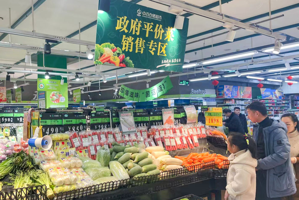 為積極應對近期雨雪冰凍天氣影響,確保武漢市春節(jié)期間蔬菜市場價格平穩(wěn),保障市民基本生活需求,2月8日至2月12日期間,武漢市政府部署在武商、中百、中商三大商超130余家門店設置政府平價菜銷售專區(qū),銷售大白菜、包菜、白蘿卜、胡蘿卜、土豆5種蔬菜。
