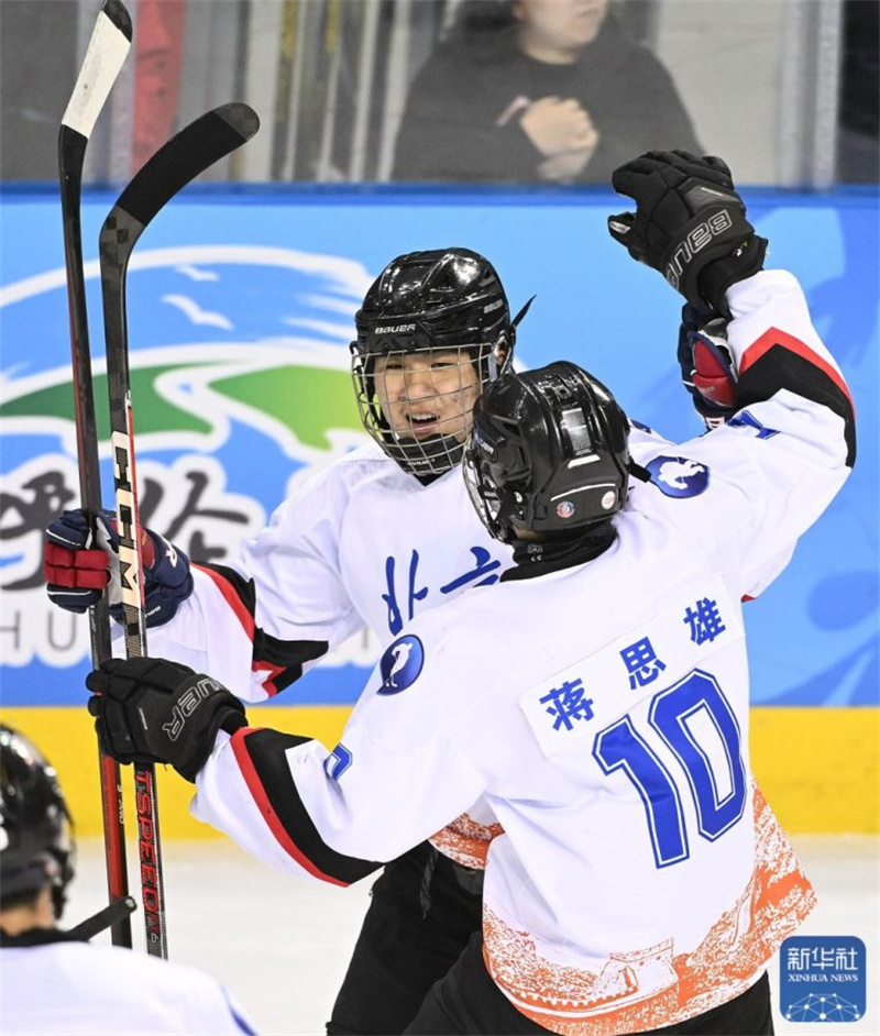 2月18日,在內(nèi)蒙古冰上運(yùn)動(dòng)訓(xùn)練中心冰球館舉行的第十四屆全國(guó)冬季運(yùn)動(dòng)會(huì)冰球項(xiàng)目男子青年組小組循環(huán)賽A組比賽中,北京隊(duì)5比1戰(zhàn)勝黑龍江隊(duì)。