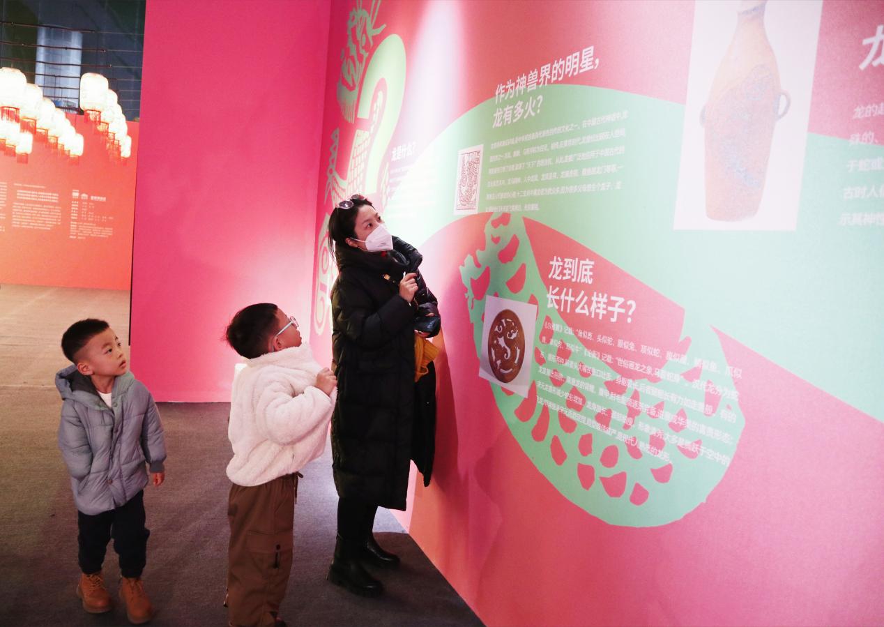 “此次呈現(xiàn)的龍與以往看到的莊重威嚴的龍不太一樣,從服飾到杯盞再到小小的裝飾品,龍的形象好像融入了百姓的日常生活,變得更加和藹可親?!睆慕K帶家人來北京過年的陳女士深有感觸。