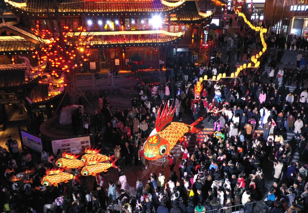 2月16日,游客在宣恩縣城體驗(yàn)“龍游貢水”。(宋文 攝)