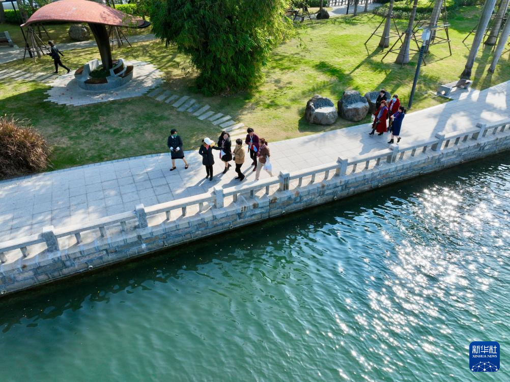 1月24日,廈門市民在筼筜湖邊散步休閑(無人機(jī)照片)。新華社記者 姜克紅 攝