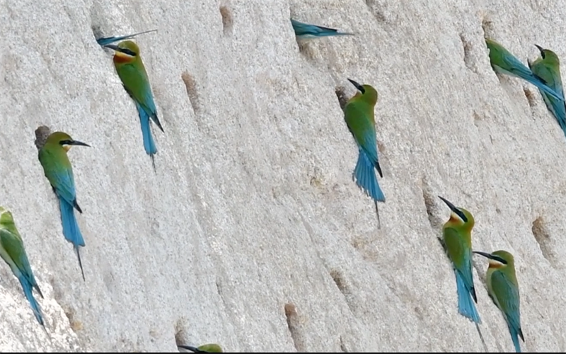 栗喉蜂虎,國家二級保護動物,被稱為中國最美麗的鳥類之一。作為夏候鳥,每年4月份左右,栗喉蜂虎會“組團”來到廈門五緣灣栗喉蜂虎市級自然保護區(qū)筑巢繁衍。