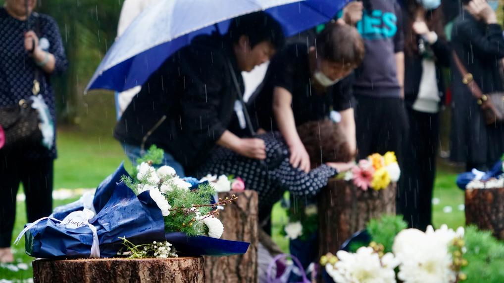 4月1日下午,在湖北武漢市石門峰紀(jì)念公園,山丘綿延,鮮花翠柏,一場集體公益生態(tài)藝術(shù)葬正在舉行。忽而雷聲陣陣,春雨降下,挽歌輕輕奏響,青年舞者在雨中起舞。起靈、送行、落葬,親友們手捧花束,目送22位逝者在此長眠。