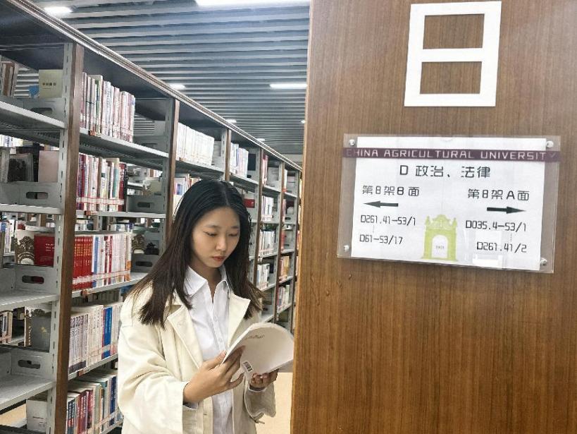 中國農(nóng)業(yè)大學(xué)青年教工石洋在圖書館閱覽