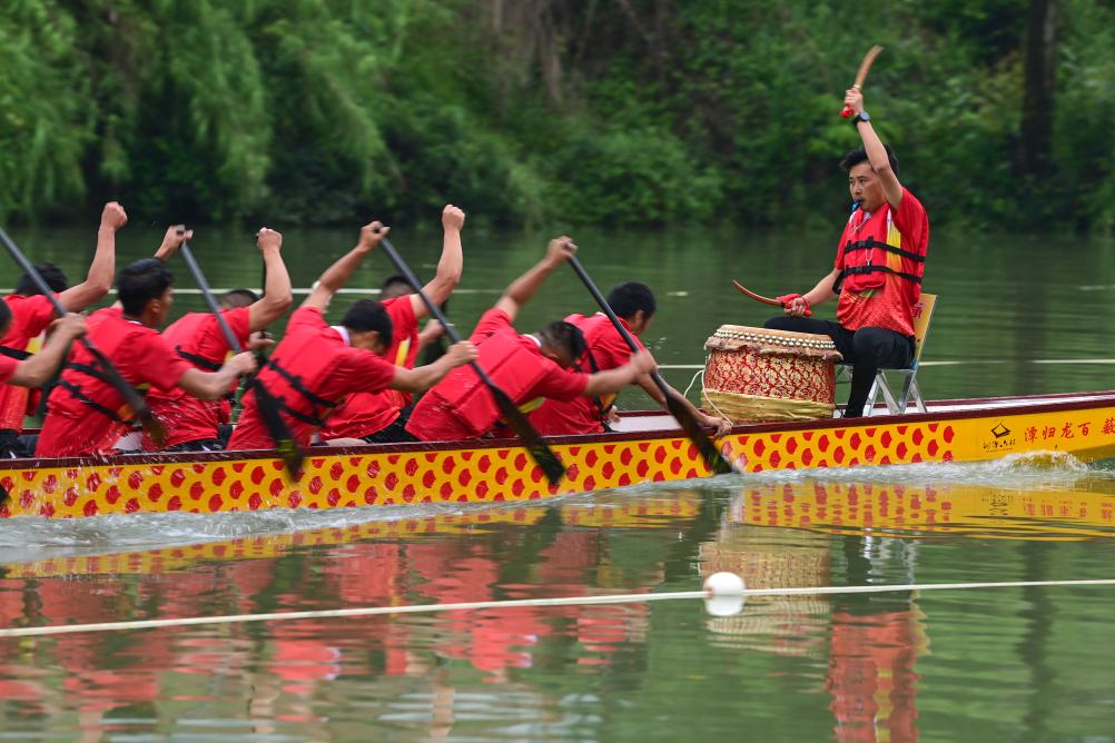 5月29日,在酉陽縣龍?zhí)舵?zhèn),龍舟隊(duì)在水面角逐。