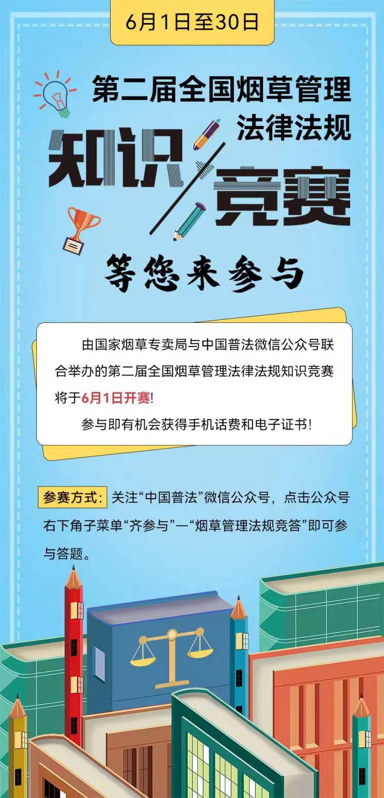 第二屆全國煙草管理法律法規(guī)知識(shí)競賽6月1日開賽