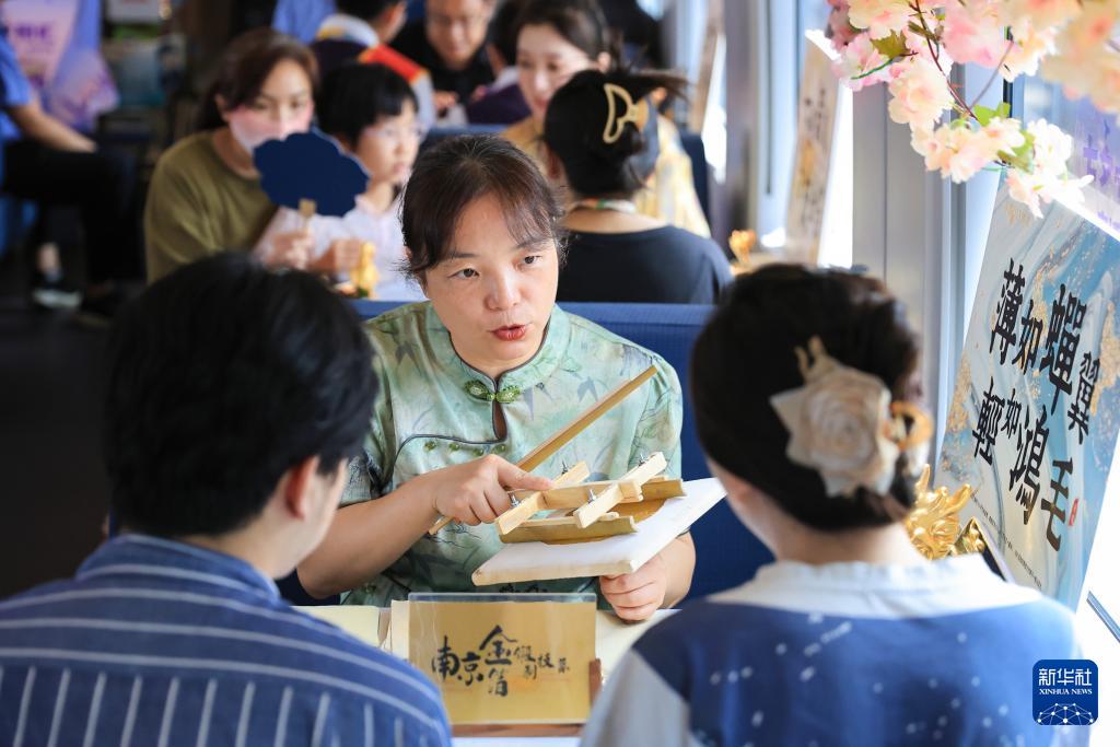 當(dāng)日,中國鐵路上海局集團(tuán)有限公司南京客運(yùn)段在G7393次和G132次高鐵列車上開展“七夕寧相匯 文博敘匠心”主題活動?;顒又?,來自南京多家文博場館的工作人員進(jìn)行傳統(tǒng)手工藝展示,并邀請旅客互動體驗,讓旅客在旅途中感受傳統(tǒng)文化的魅力,迎接七夕節(jié)的到來。